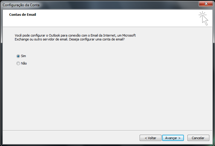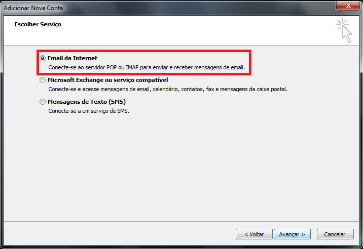 Deixe a opção "Email de Internet selecionado e clique em avançar.