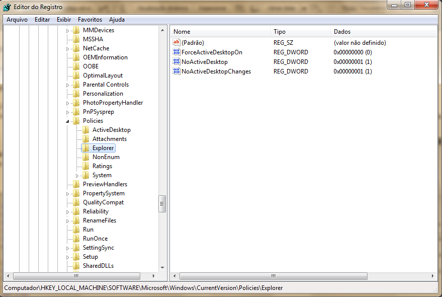 CurrentVersion\Policies\Explorer - esta chave alterará os atributos para todos os utilizadores do computador. Existe a possibilidade da necessidade da criação da “directoria” Explorer manualmente.
