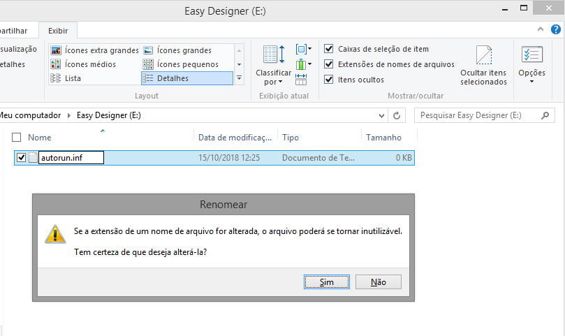 Passo 4. Nomeie o novo arquivo como "autorun.inf" e pressione "Enter". Caso haja alguma janela de aviso, confirme a operação;
