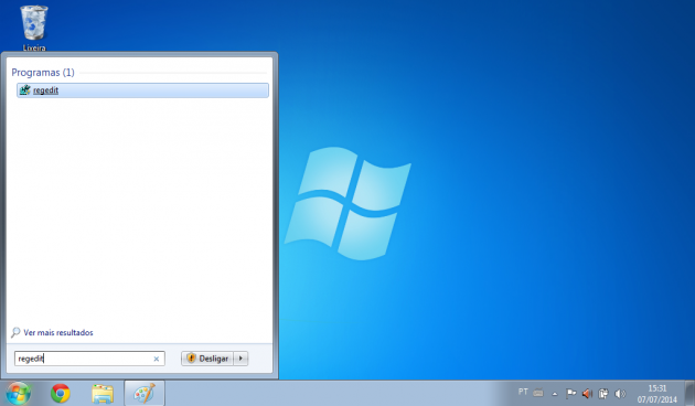1 - Abra o Registo do Windows. Vá a Iniciar > executar > digite “regedit” (sem as aspas).