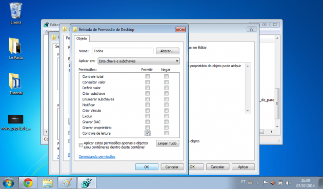 Estamos quase lá, prometo. Agora, clique em "Adicionar" e crie um objeto chamado "Todos". Clique em OK e selecione a opção "Permitir" em "Controle de leitura" - só essa. Clique em OK. Selecione o novo objeto "Todos" e marque "Permitir" em "Leitura". Clique em OK.